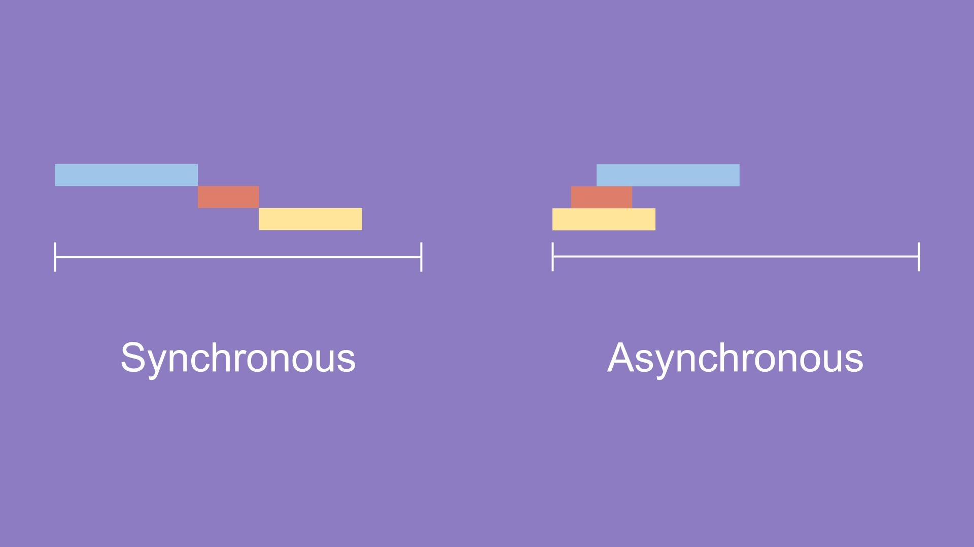 동기적으로 청소를 진행했다면 최악의 상황으로, 먼저 빨래를 돌리고 한 시간 정도를 기다린 뒤 빨래를 꺼내 건조기에 넣고, 또 1시간 뒤 건조까지 마무리가 되면 화장실청소를 하고 청소가 끝나면 설거지… 하지만 아무도 이런 식으로 청소를 하진 않을 것이다. 보통은 제일 처음 빨래를 돌리고 그 시간 동안에 화장실청소와 설거지를 할 것이고 그 시간동안에 화장실청소와 설겆이를 마무리하고 빨래가 끝나면 건조기를 돌릴 것이다.(비동기적 청소) 이처럼 세탁기를 (백그라운드에) 돌려놓고 그 시간에 나머지 청소를 함으로써 동기식보다 좀 더 빠르게! 효율적으로! 청소를 할 수 있는 것이다.