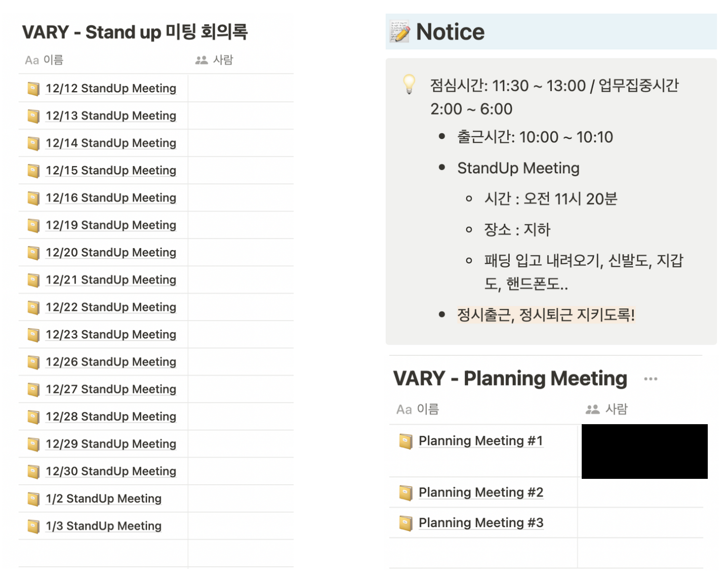 - 팀 회의를 통해 미팅시간, 업무집중시간등을 정하여 주어진 자율성을 최대한으로 이용할 수 있게끔 하였다.